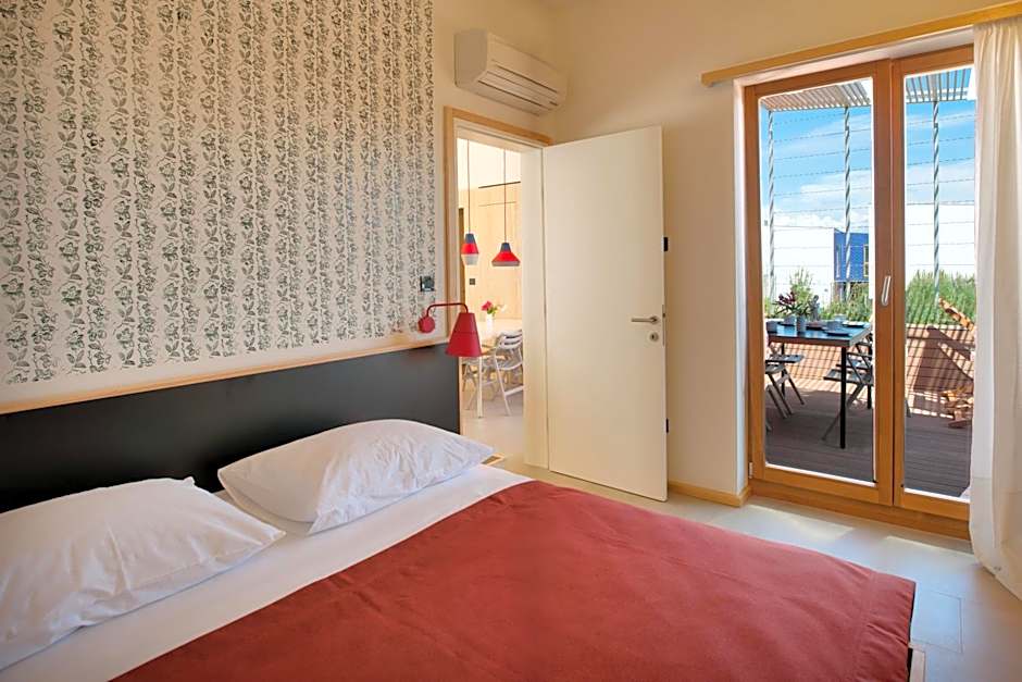 Air-conditioned apartment consisting of a double bedroom, terrace, living room and kitchenette equipped with a microwave, coffee machine, fridge, and dishwasher. It is also equipped with satellite TV, safe, and hairdryer. Please note that pets are not allowed in this type of apartment.
